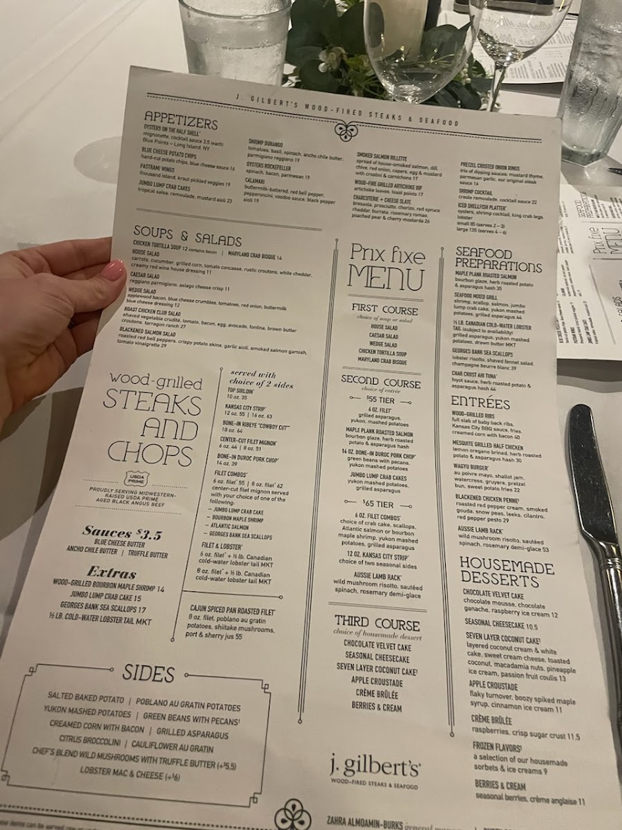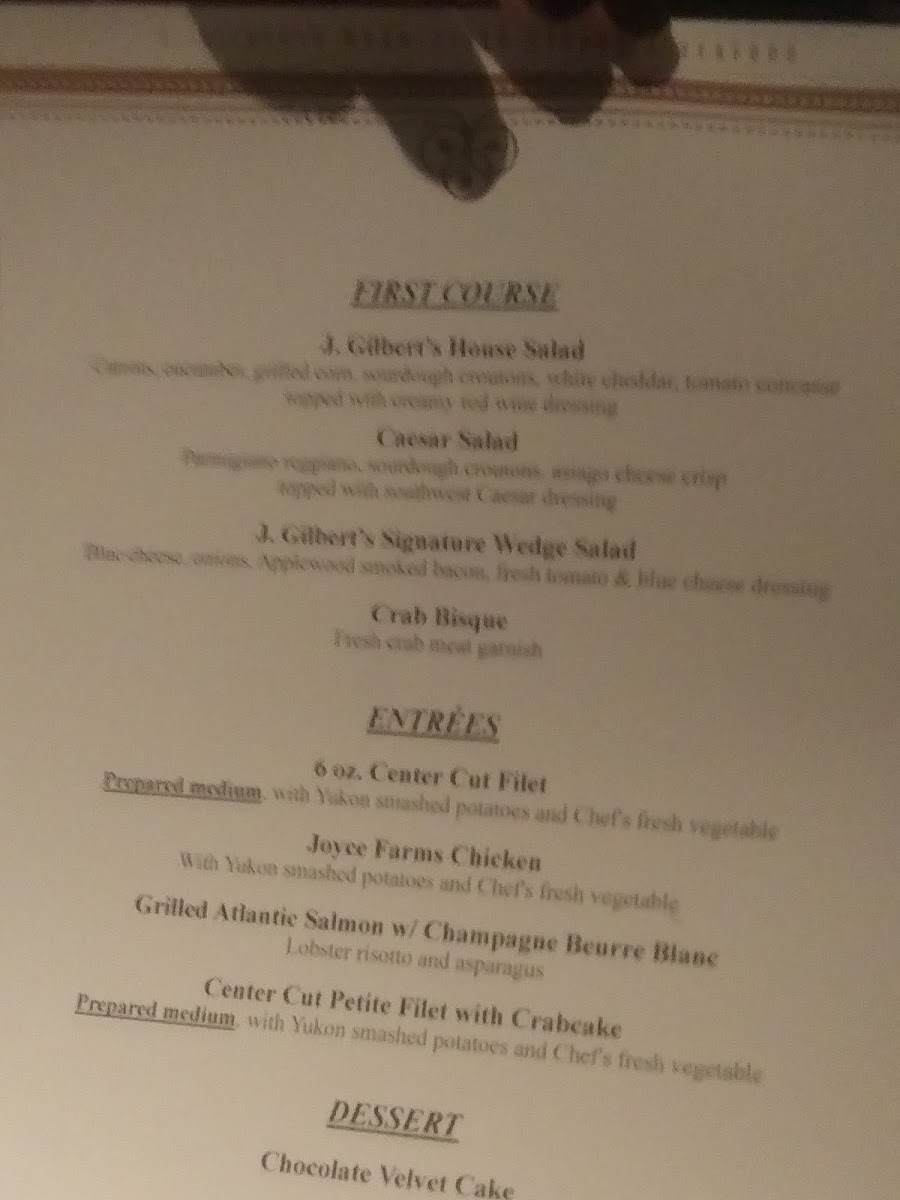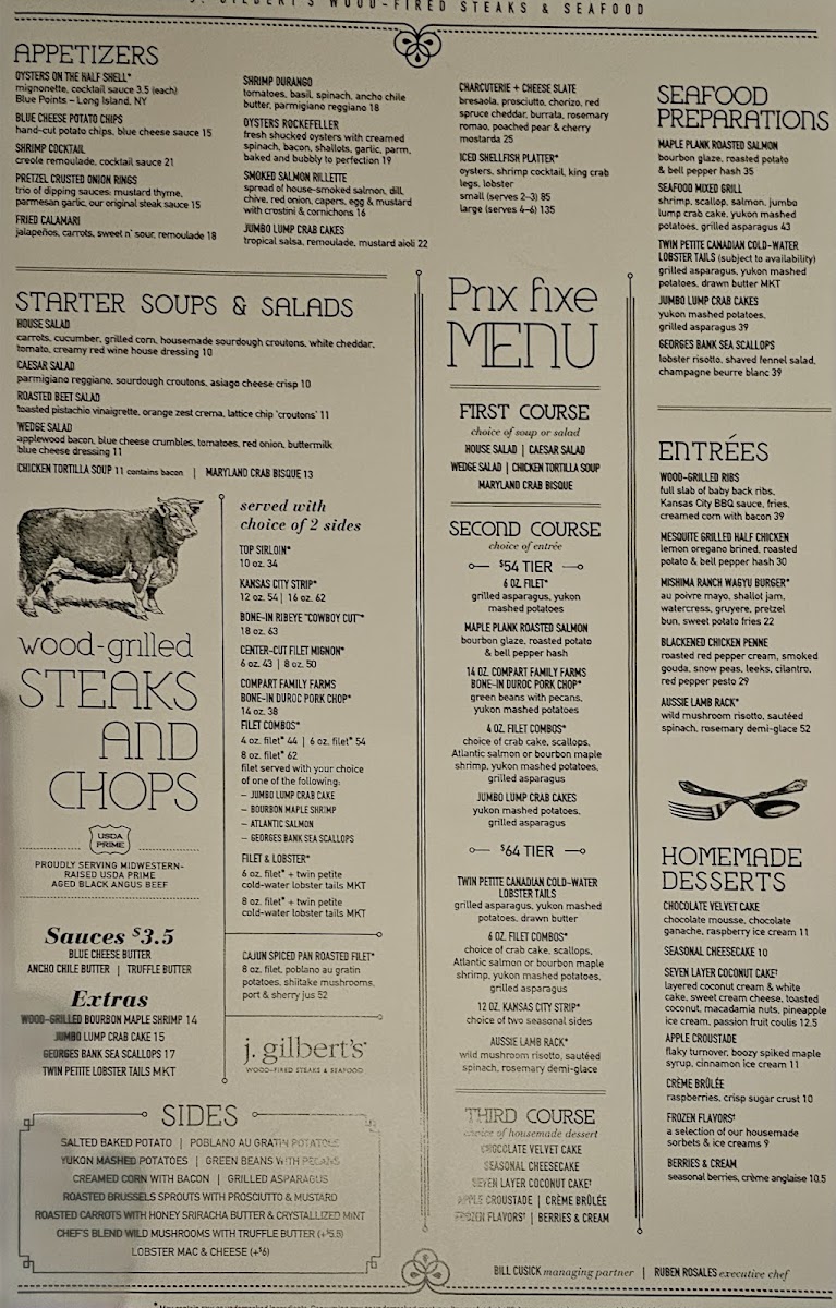 J. Gilbert's Wood-Fired Steaks & Seafood Kansas City Menu
