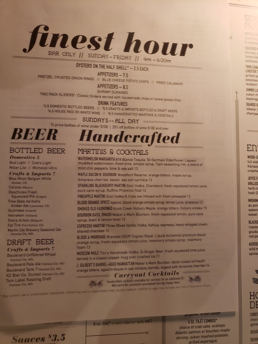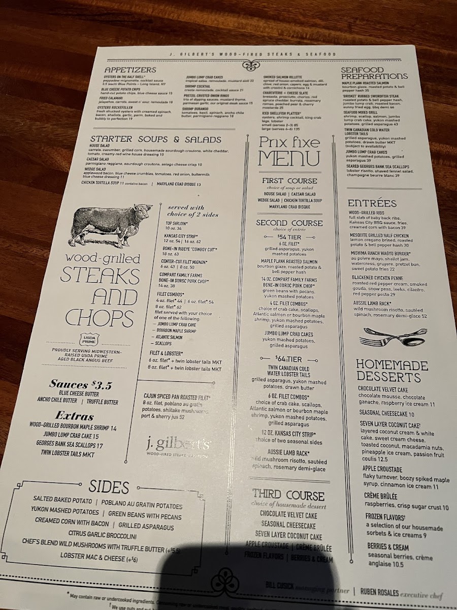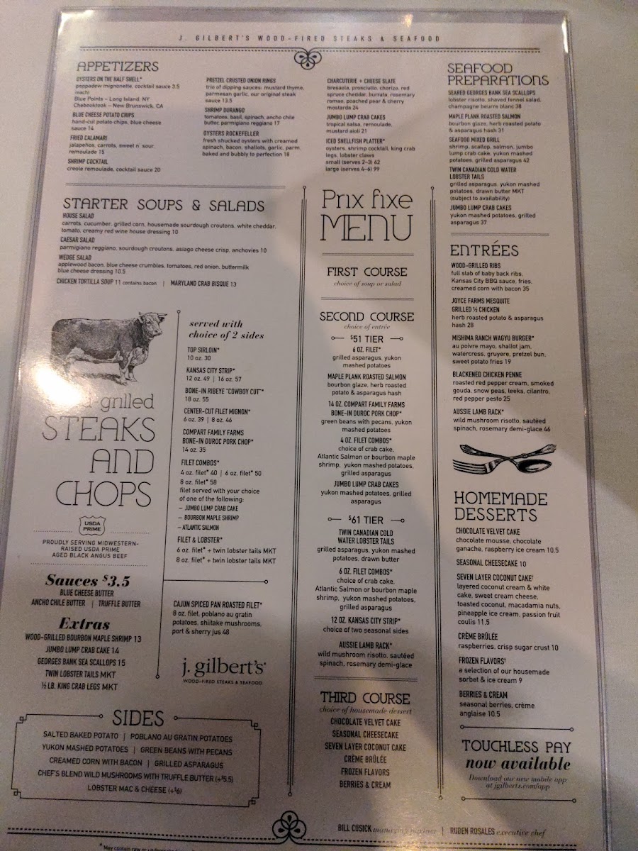 J. Gilbert's Wood-Fired Steaks & Seafood Kansas City Menu